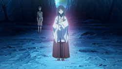 All this time, I thought that Miyuki was kind of pointless up until this episode. Even though he holds a great deal of knowledge and seems to be the protector of Izumiko, he hasn’t been very informative or helpful. I always thought of him as a love interest too, but even that has died down since they don’t seem to be the most romantic couple. I’d have to give Miyuki some points for defending Izumiko even though his role was basically overshadowed when the goddess appeared in person to put the “dragon” spirit back to sleep. This was followed by a brief confrontation between Izumiko and the goddess who is supposedly within her. None of this is explained in detail until Izumiko’s mother (Paku Romi) finally appears and we get to understand why she’s so distant from her own daughter. We heard from her back in episode 2, but even now I’m still skeptical as to her role in helping her daughter. Her father seems to have better interests for her well-being.