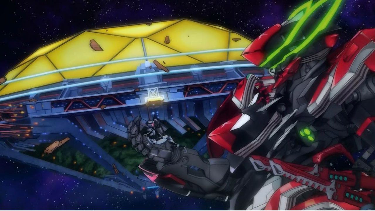 I suspect Cain’s the one who has access to the two remaining Valvrave. He’s probably boss character of the first cour and he needs a mecha that is at least as powerful as the Valvrave – presumably, on par with the combined effort of the five at Module 77 :3