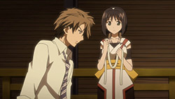 It’s inside that quarry that Hinohara and Kanate make the acquaintance of Ruka (an anime-original character) an orphan boy who shows them the ugly underside of the shining city on the hill. There’s quite a bit changed in the dynamic here, which finds Hiroko anxious to find someone who can return his boss to the kind soul he was before his quest for perfection turned him into a cruel tyrant. The notion of Suzukura as a kind of capitalist paradise with a nightmarish underbelly does carry over, as does the changing dynamic between Kotoha and Hinohara. She’s not calling him "-sama" anymore, an acknowledgement that he’s not the Arata she grew up with, but the interesting thing is that this has brought the two of them closer together. A layer of formality between them has been removed (much to Kanate’s horror) and she’s seeing the good side of this other world’s Arata.