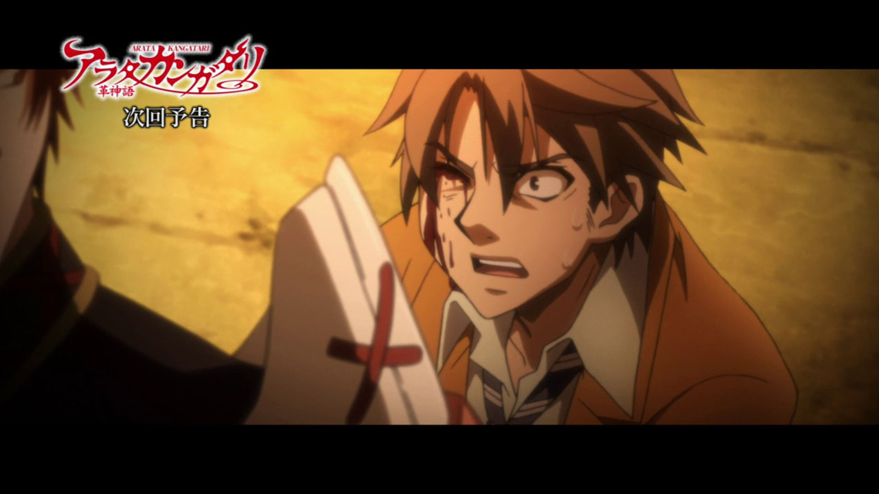 The great Arata mash-up of 2013 is underway, and scheduled to run for the next two weeks. Something, as they say, had to give – there was no way the adaptation was simply going to present about 20% of the manga and stop. The approach we’re seeing is along the lines of what I suggested last week appeared to be happening – bits and pieces of character arcs which superficially seem to have no chance of being adapted are being grafted together, as a sort of sampler platter of the breadth of the manga.