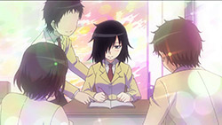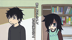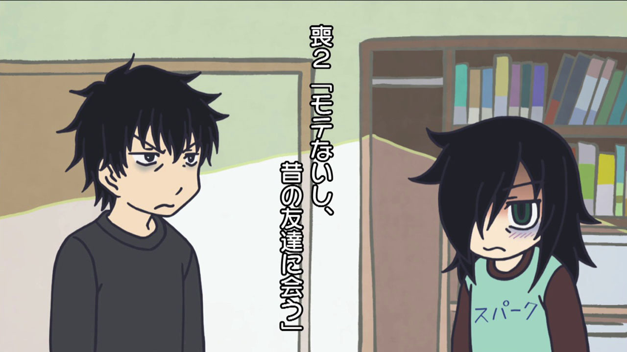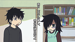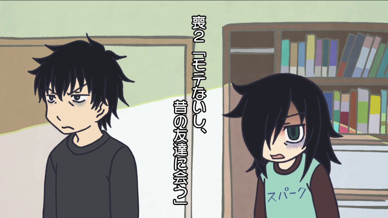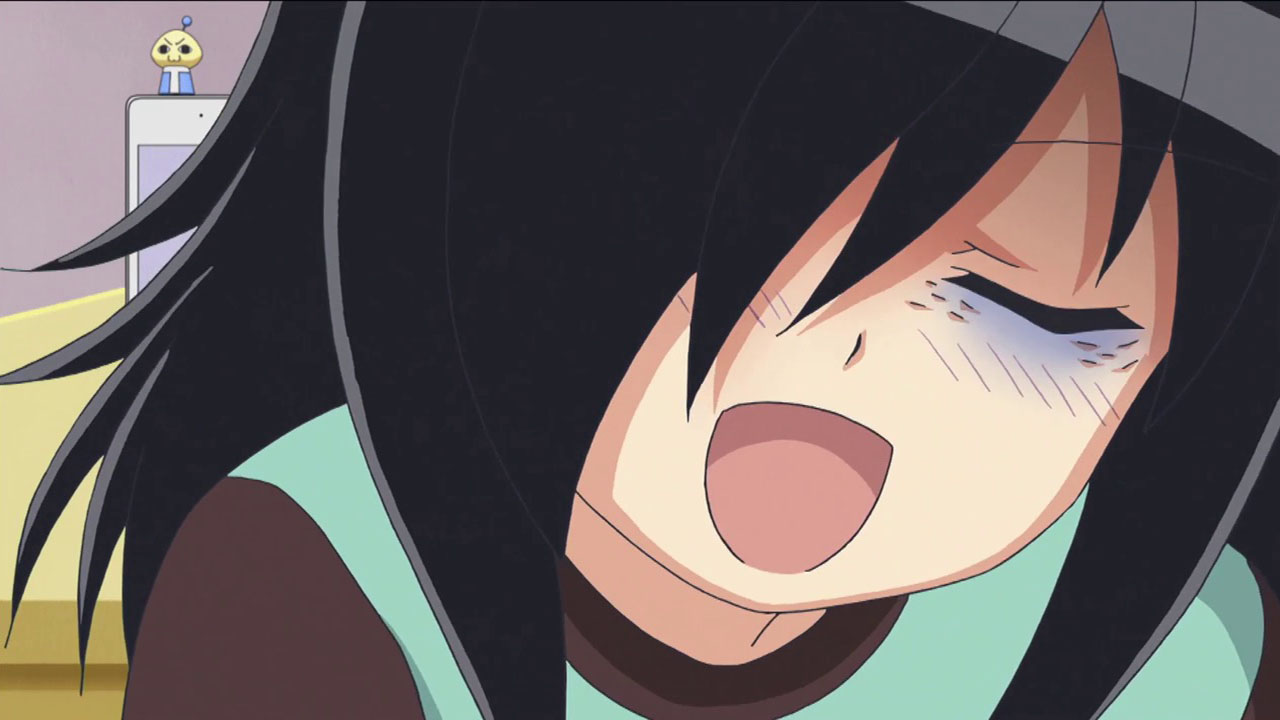 This is a strange sort of comedy to say the least. In fact (though perhaps this is not so unusual for comedies) it may very well be the saddest anime I’ve seen this year. There are obvious comedic elements to Watamote, starting with the often hilarious sight gags and the fact that it may be one of the least politically correct shows you’ll see. But the overriding gut-level reaction from me is that this is more tragic than most tragedies, because hidden underneath the absurdity is a scenario that’s eerily and uncannily close to a very sad reality for many adolescents. Even the aforementioned sight gags are at the expense of the main character, and usually highlight a moment of extreme discomfort for her (which is almost every moment, truth be told).