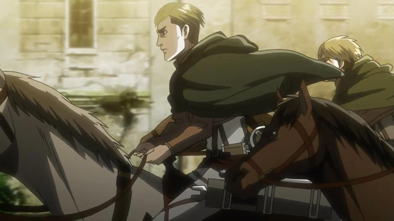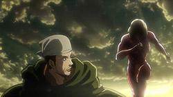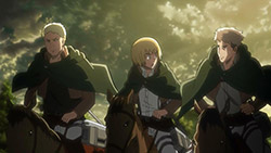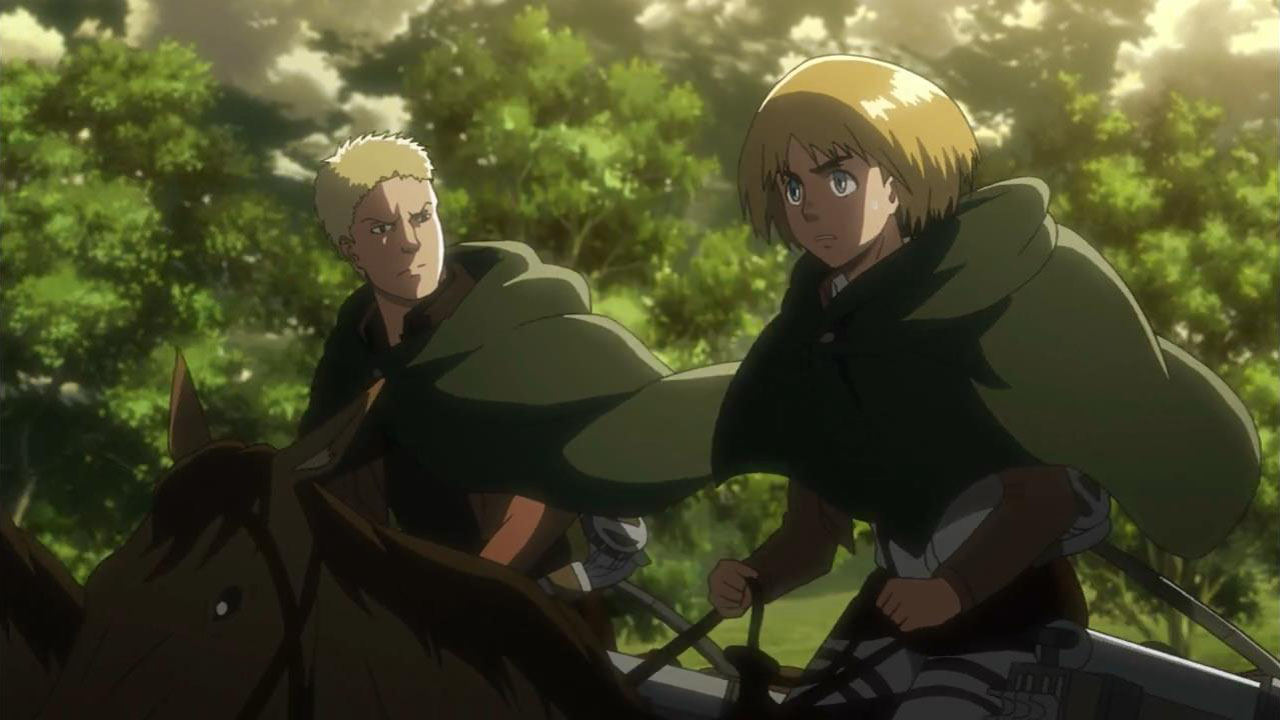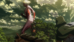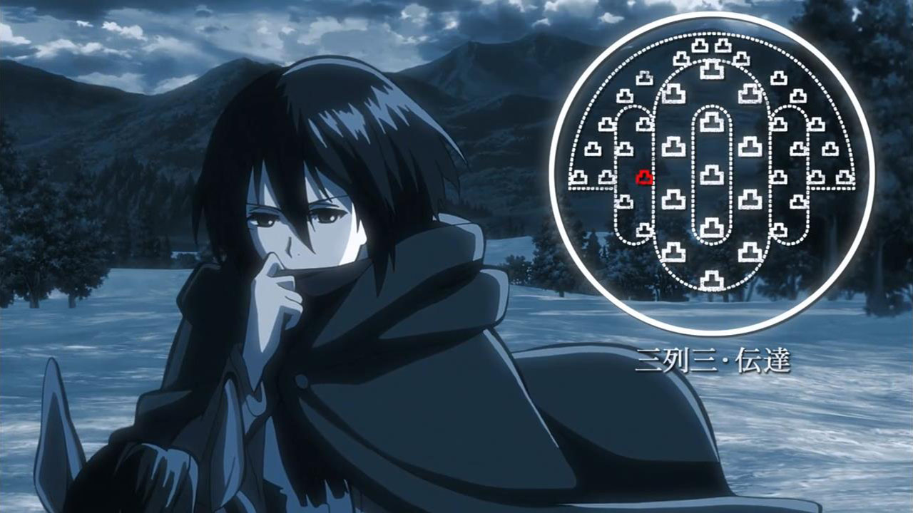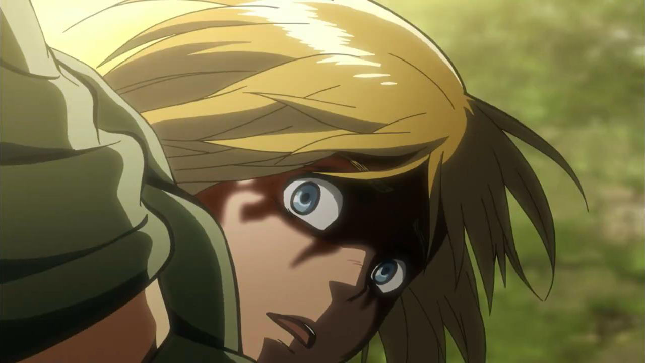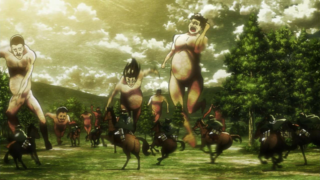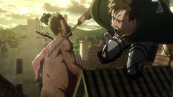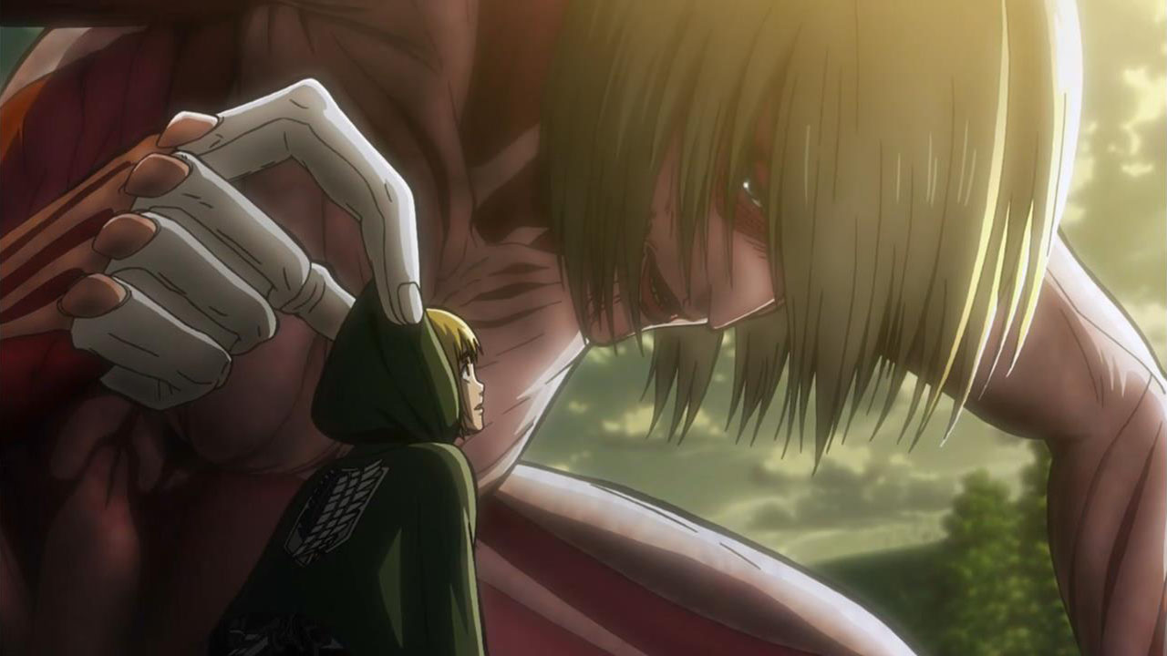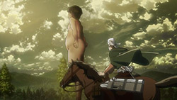 I feel like a step in Armin’s thinking was omitted? Because “the female titan is intelligent”, he concluded that “the female titan is a human like the colossal and armored titans”. He doesn’t know that the colossal and armored titans are humans, and the only evidence he has for concluding that is Eren, who is essentially anecdotal evidence. Idk, something about his logic really bothered me, since he’s supposed to be level-headed… He’s probably right though.Also, while I suppose the titans are sometimes given silly faces or weird running patterns to make them more creepy, I can’t take them seriously sometimes. The aberrant one in this episode made me want to giggle at how silly its gait was. Great episode otherwise. Watching the recon squad maneuver on a flat expanse got my adrenaline pumping and the animation was especially spectacular this week. Seeing the formation diagrams composite-ed on the still shots of characters, and the whole transitional “camera” work between those frames, was refreshing and imo executed really well.