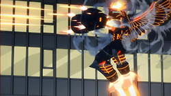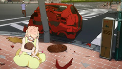 This episode prods at these themes all over; we see GALAX being credited for the successful cable car rescue, not the civil workers and rescuers who actually did the work. Later on in the episode, the narrative repeatedly (albeit rather simplistically) tries addressing the generational theme, centering on an argument that galaxters could response to a situation faster than any traditional civil institution. The second half was when it gets really interesting; a hit-and-run perpetuated by Berg Katze show the very limitations of GALAX when a SOS by Rui fails to achieve anything. And then theres Joe; portrayed at the start to be cynical and uncaring, likely due to the fading relevance of the Gatchamans. (the show makes a point on how the Gatchamans are but a myth in the city as well.) With Berg ramping up his disastrous activities, were starting to see a renewed and determined Joe wanting to take up the mantle of beating Berg, a foe that only the old world heroes might defeat. I dont believe the mirroring of Joes change in attitude is a coincidence, but I wonder what Nakamura intends to say with it, especially with the forboding notion of JJs red paper bird (symbolizing Joe) going up flames.