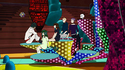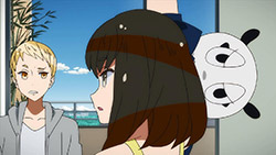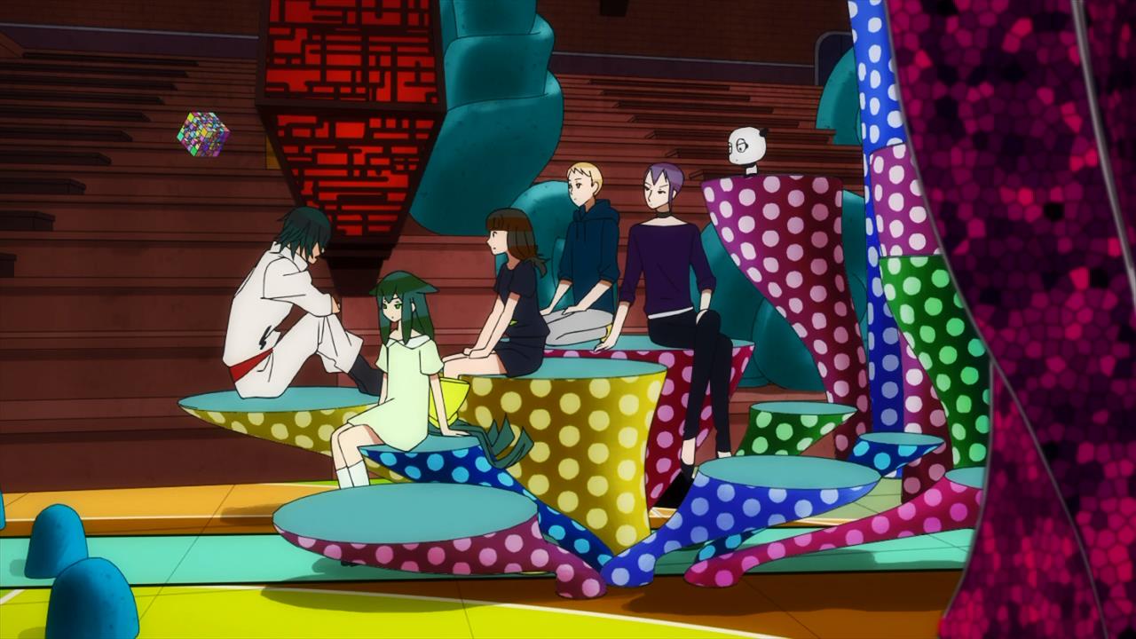 I have to admit though, this episode was more than a little hard to swallow. Its easy to get lost in the dense, overextending dialogue of Gatchaman Crowds. Up till now, the scattered storytelling has been making it even harder to try and work the many ideas thrown at you into a coherent picture. That were already at episode five and Im still saying these same things should clue you in to some degree of the problem here, and Im not feeling the same singular storytelling vision that Toshiya and Nakamura previously showed in Tsuritama. In fact, this is starting to feel like a familiar case of [C], a Nakamura story that got too wrapped up in its many themes and ideas to deliver a consistent story by its end.
