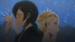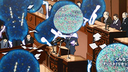 But even so, I still cant help but love it when a show tackles a topic this close to heart, and does so with the breadth of scope this topic rightfully deserves. (Even if this scope is not entirely warranted. I can already see the overstuffed show tearing at the seams.) Every episode seems to bring something new to the table, and Ruis half-episode long monologue was an intriguing look at the fundamentals of social networks. We finally get to see the full picture of Ruis vision, and suffice to say, the show doesnt quite hide from the idealism of it. No, in fact, the theatrics seem to make it as though they were reveling in it; he illustrates an ideal world where the singular notions of the individual are absent, and where the world cooperates and improves itself through a single, connected network. It also explains his refusal to use the CROWDS power given to him by Berg; his ideal solution is through the cooperation brought about by GALAX.