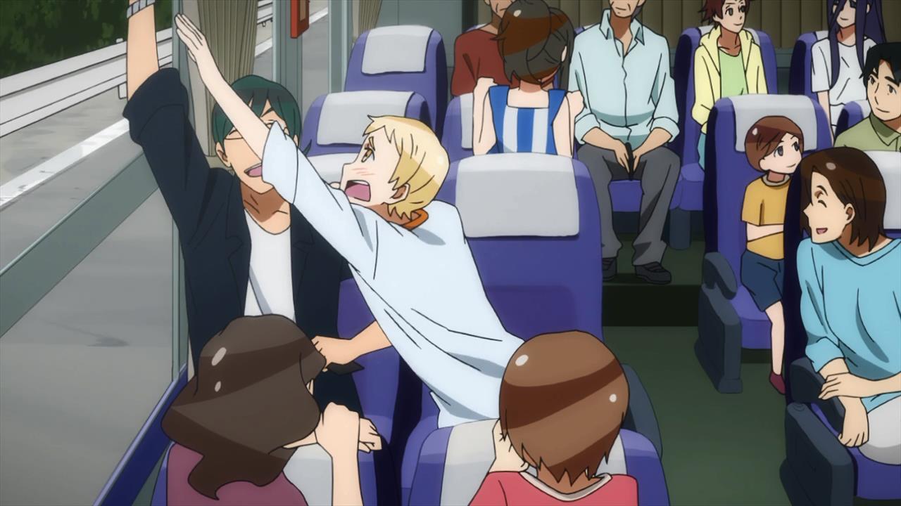 Oddly enough, I *don’t* have an issue with the pacing problems that seems to be the complaint du jour — the odd, somewhat disjointed bits of info combined with only superficial understandings of the people we’re watching. Or rather, while they’re problems when the expectations are that of a traditional story pattern, they’re intrinsic and (I’d posit) intentional in a way that can only be appreciated by viewing it as being on the same level as the social media that it’s basing so much of its story on.Take the conversation in the back of the bus. Heads of four important organizations that meet together for their little collage outings, but don’t even have each others’ phone numbers. They know about as much about each other as we do about our heroes. Hang out this week to watch them beat up the latest bad guy, but no intrinsic understanding of each other.I’d say that’s the fundamental issue with Rei’s idealism — his hand-picked partners are only understood on the surface, and his desire to have everyone help each other out ignores the full breadth of human interaction. We even got a subtle jab at that from seeing that #26, who in their little argument came off as pretty much an ass, also is a father of a young girl and is hanging out with her at the playground. Why is he so intent on using CROWDS? Is his real motivation something as superficial as recognition, or is it just a cover? Or is the recognition he seeks merely the means to another end altogether?Rei’s view of him is on at the level of a social contact on Facebook, and our view of them is just as shallow.
