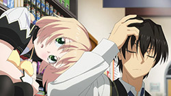 Am I the only one who was happily enjoying the breas… story? Yeah we’ve seen it before but I really like Fino and a quick search shows that the seiyu is a new talent (at least she doesn’t have much on the online listings). Her laugh when she came out in the uniform was money and cute! Strangely I feel like I’ve heard her voice before but her online credits are barren. Hmm. We’ll I’m a romcom addict so I suppose I’m pretty forgiving. 😀