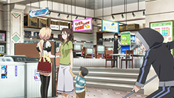Same here, I was so sure that I’d heard her somewhere before, but I was drawing a blank as to exactly where. Then the credits came up and I was left scratching my head. Raul is nice and rather mature, but he doesn’t have anything that makes him interesting to watch, unlike say from Maou from Hataraku! or Kanou from this season’s Outbreak Company, so Fino’s carrying the show for me now. The presence of four females with blond/light-coloured hair feels a bit redundant to me…where did Miss Fanservice from the fight sequence go? Does the boss have to have pretty much the same shade of hair colour as bubbly coworker? Appearance-wise it’s lacking in variety a bit…although the neighbouring convenience store (?) doesn’t appear to have this problem.