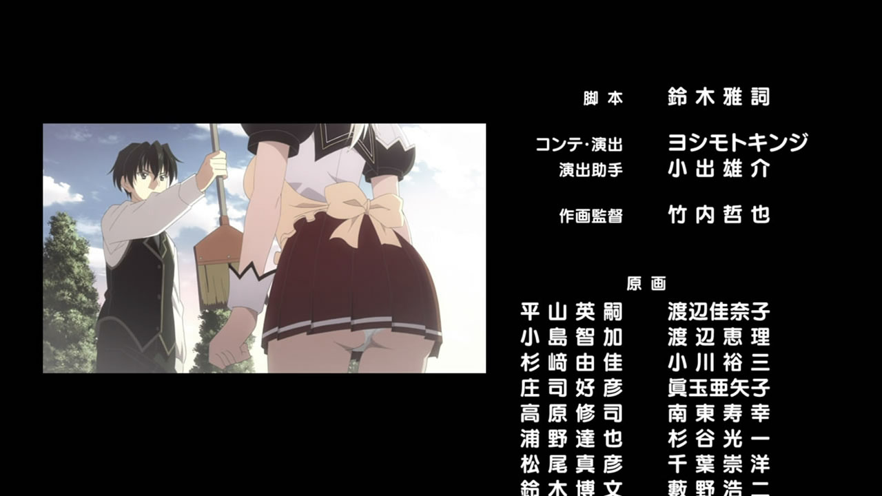 @Stilts: Honestly, I dont have a problem with directors / scriptwriters modifying the story to fit the new medium. With rare exceptions, you cant use the manga as a storyboard because it wasnt designed to be a storyboard, its a comic.Obviously, you can’t literally copy the panels exactly for adaptation and hope the will work out fine, but a lot of successful/popular manga (and LNs) has been adapted to anime with little change – even action oriented stories like Shingeki. SHAFT has managed to adapt a very dialog driven Mongatari series with, as far as I can tell, very little deviation from the original work. Granted it’s an LN, but I don’t think that makes it unsuitable as a good example. Altering something because it literally needs to be done in order to be presented in a different medium is one thing. Change simply for the sake of change or because the director/script writer/producers think “they can do it better” is entirely something else.What makes it so often go wrong is they change things around without understanding what made the original one popular enough to get animated.THIS^ is what I’m talking about. I read a considerable amount of manga and translated LNs, and seemingly there are more and more instances in which changes clearly not required for adaptation are made. While I’m not sure if it truly qualifies as the “original source material” due to lack of English TL for the LN to compare, I think Maoyuu Maou Yuusha (Hero be Mine, I Refuse!) manga vs. the anime is a good example of this. Given your previous comments, I think you would agree that the manga is superior to the anime, and had the anime faithfully followed the manga, it would have been much better off for it. As a fan of a manga/LN based works, it is quite frustrating to see something you enjoy unnecessarily altered (i.e clearly not required to adapt to a visual medium) and worse off/less enjoyable for it. Sadly, I can think of numerous examples such as additional/replacement material, swapping character lines/actions, exaggerating character traits, etc. done in a wide variety of shows. Cuts (deleted material) can be required since an anime series only has X amount of air time, but that still doesn’t provide a valid reason to do so with reckless abandon just to reach a “good” ending point. Again, IMO Maoyuu anime provides a clear example of where cutting material with reckless abandon in order to get to said “good” ending point is detrimental rather than necessary for adaptation. Getting back to this series specifically, there is little translated “source material” out there. None of the six LN volumes have been translated, and so far, only one chapter of the manga. Even so, assuming that the manga is faithful to the LN (no reason to think not), I found the “source material” superior to the “adaptation”, and IMO I can’t see how the anime’s deviations were “necessary/required” by the change in medium. To be clear, the previous statement does not take into account the anime’s added fan-service. Frankly, that didn’t bother me, but given some of the posted comments, clearly some thought it excessive so I mentioned it to be fair to the original work. It’s only one chapter, so you might find it worth your time to read it here and draw your own conclusions.