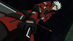 I like the game, but so far I’m not impressed either. For those who haven’t played the game, this episode pretty much follows Ragna’s story line (skipped fight with Arakune in the sewer), and while it actually doesn’t tell you much more than you would get from playing the game, I do like seeing the nice animation instead of screen full of text.
