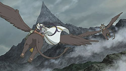 Don’t forget about Naotsugu’s Griffin tried to chomp on his head for the 2nd time in the past 2 episodes.And another thing of note, the trio tried a chef’s handiwork before they started off, and the result wasn’t that great either (if the white-on trio was any indication).