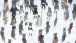 Going to get interesting going forward, that’s for sure. I’m guessing the first half will end with the re-establishment of the Debauchery Tea Party (look no further than the flashback) and the second will deal with why everyone ended up in the game. In between that insert a showdown between our friendly neighborhood enchanter Shiroe and armoured glasses man, there was some subtle rivalry hinted at there.The food thing was strange though. The way I understood it was all natural ingredients by themselves (ex. sugar, salt, fruit, vegetables) had their expected taste; it was only when you combined them or cooked them that they then became tasteless (Naotsugi mentioned at one point how they literally eat tasteless food they created by combining ingredients plus an orange on the side). Also noticed the lack of fatigue and injury. Their “lives” are in effect tied to their HP bar: anything which does not deplete it cannot affect them life-wise.