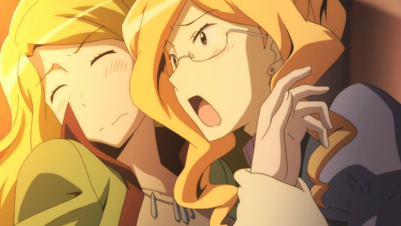 Speaking of Akatsuki, she’s in college!? Okay, I actually expected this because the joke was too good to pass up, as was the chance of continuing with the Akatsuki x Shiroe romance (which could have gotten weird if she was too young), but that doesn’t mean it wasn’t friggin’ hilarious when Naotsugu and Shiroe found out! Related: Akatsuki is still super cute. Related x2: She’s the perfect girl for Shiroe, because she can get just as hyper-scary angry as he can. Related x3: Akatsuki says keigo kinshi, Shiroe! Related x4: Seriously though, she’s really friggin’ cute, and Naotsugu is enjoying their flirting too. I could do this all day, but I’ll stop. For now.