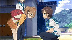 I’m glad hey’re not taking a break from Hikari’s development that started to show in the previous episode.He shouldn’t get anymore hate for now – at least I’m cool with him,although it’ll take more than that to make me like actually him but that’s fine,they got plenty of time so nice & steady might be the best way to go.For the first two episodes I was worried that they Hikari so unlikeable that it’d be harder & harder to accept his developments if they didn’t come soon enough.Suffice to say,I’m very glad they did.It was also nice to see Manaka try & reach out to her land dweller classmates on her own initiate.All in all,Nagi no Asukara is clearly one of the better shows of the season and my expectations are slowly getting higher with each episode.