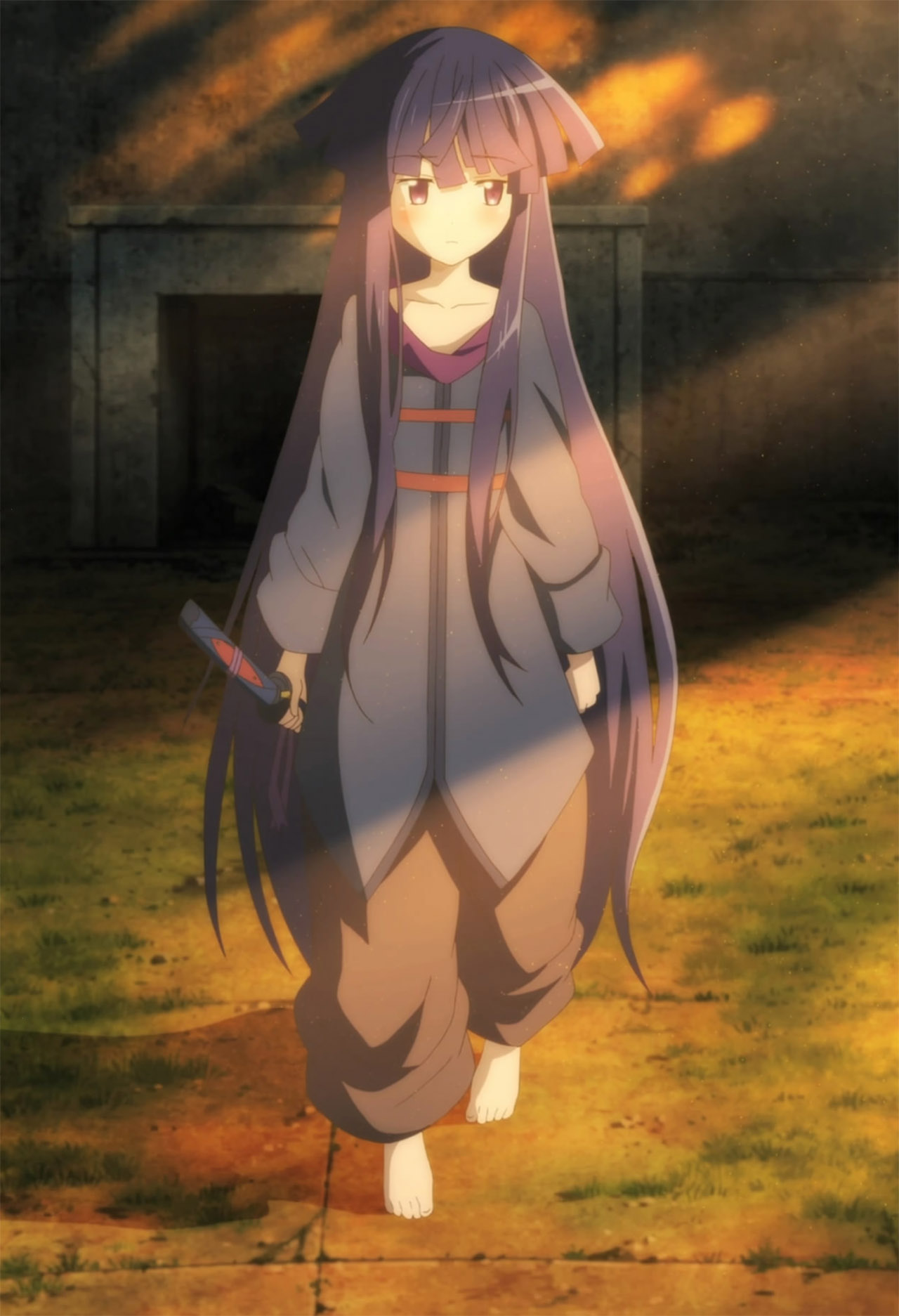 no the miko girl in the OP during the revolving scene where Akatsuki is wearing a kimono and she’s in aschoolgirl outfit, she’s the twin’s sister in this episode