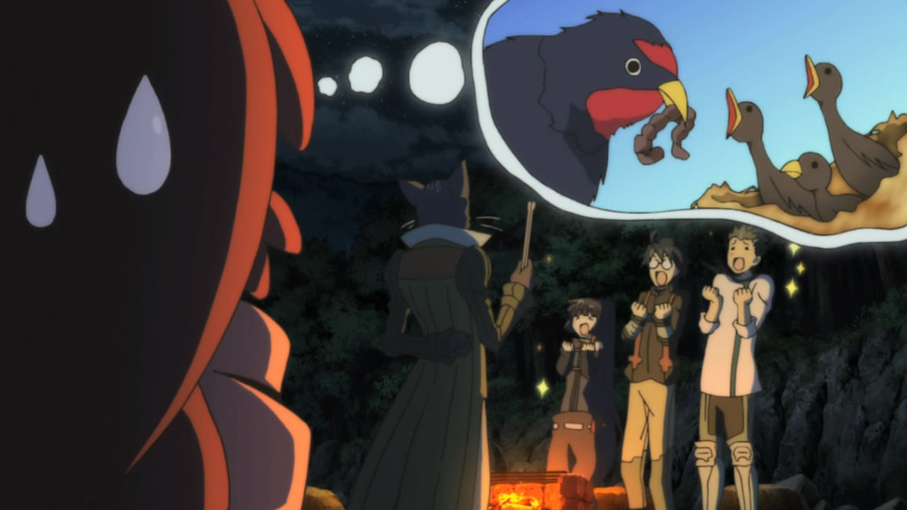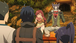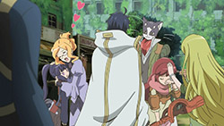I have never in my life seen anyone enjoy a meal as much as this. Shiroe’s team either needs to make sure Nyanta never leaves them or make Naotsugu reroll whatever his stupid subclass is into Chef, because after a meal like this I don’t think they can go back to tasteless mush. What I found interesting was that cooking requires both the Chef subclass and cooking the ingredients like they would IRL. I had forgotten that Shiroe and co did try to cook the normal way back in episode three, so it makes sense that both would be required. For this and other reasons, the world of Elder Tales is increasingly looking like a real world with fantasy MMORPG systems laid over it.