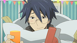 Hmm. There’s such a huge resemblance between Shiroe and Minamoto from Zettai Karen Children. Now he just need to find some kids and groom them…