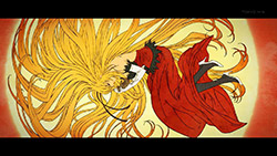 Overall, I liked the episode, but personally I thought Kiss-shot/Shinobu got a bit over-powered up. She jumps from the arctic (or antarctic – can’t remember which one) to Japan and in the process almost destroys the arctic/antarctic? O.o. Made me think of the Incredible Hulk rather than a vampire… Not a big deal, but still a bit too over-the-top for my taste.I also really liked the way the characters and backgrounds were illustrated along with the music. They gave a very Edo Period feeling to the story. I also liked the contrast with what was presented about Kiss-shot/Shinobu – here’s this fantastically powerful creature, yet it all comes down to her simply being lonely. Quite an interesting contrast IMO. It really ties in well with why she’s become so attached to Araragi, and how different his attitude and actions towards her are/were from her first “servant”.Probably too unrealistic given the circumstances surrounding his “revival”, but I can’t help but wonder what path Kiss-shot/Shinobu’s fate would have taken if he had been as understanding as Araragi. Of course, Araragi does have one significant advantage over servant #1 -> Mr. Donut ;).The combination of the visual design, music and Kiss-shot/Shinobu’s essentially sad tale were enough to capture my attention for the entire episode even with all the dialogue. SHAFT continues to do a fantastic job with this series. Eagerly anticipating next EP as I’m very curious to see what that “darkness” really is given how easily it destroyed someone/thing as powerful as Kiss-shot/Shinobu turned out to be.