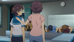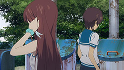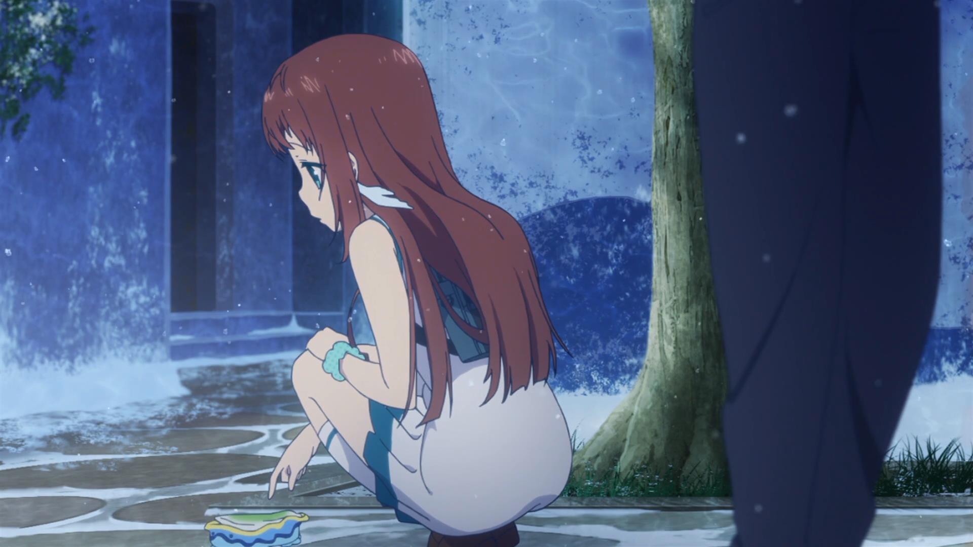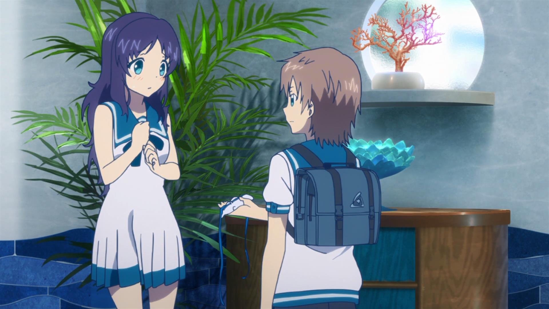 There could, of course, be some interesting way of having the landed people survive and the sea kiddos interact with the children or what have you (would the sea kiddos have aged? Possibly, but not to sixty years, I doubt), but somehow, considering the emphasis placed on the importance of Tsumugu and Manaka’s meeting, I find that somewhat difficult to believe. The other option is where a time skip is more likely; for whatever reason, if the sea kiddos wake up much much earlier than this, but not long enough to bypass a disaster, then we could ostensibly see something like this happen with only slightly older versions of our cast. My problem with that scenario would be what the kids would do in terms of the disaster, but I’m imagining that it would probably prompt them even further to find some way to overcome it. A time skip could also occur should the children decide to stay and then later have to deal with the consequences. Whether or not I find such a skip necessary, though is a different question. Personally I like the way things are now; it’s not every day we get to watch a middle school cast in such believable emotional circumstances, and I’d like that to work out on its own without the need for the usual scenario with high schoolers acting like middle schoolers. Then again, maybe that wouldn’t happen either, but I’m happier not finding out, for the most part. However, the fact remains that this is speculation, and while the writers definitely have some choices as far narrative goes, the choices the characters face are more immediate and pressing to think on.