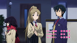 I don’t get it. The real conflict in this story is Mitsuki’s, in that she has to deal with the pushy ghost Kotobuki Hiyori (Ogura Yui), while Yuuya’s troubles with his hard-to-understand imouto are a small counter point, just something for us to chuckle about before we get back to Mitsuki’s trials. I don’t understand why they put so much focus on Yuuya this episode at the expense of explaining what the hell is going on with Hiyori! I can only guess that the producers assumed their (predominately male) audience wouldn’t be able to relate to a female protagonists as well as they would Yuuya, though perhaps that’s too uncharitable of me. If I’m right that’s just wrong though. I could related to Mitsuki just fine, if they’d give her the time she needed.
