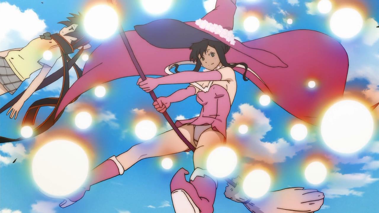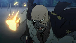 Still, it’s hard to actually throw up any complains when we actually get around to these segments of Enjin brushing up against the Sakura town brigade. Enjin is always erratic in behavior, always unpredictable in action, and its extremely fun to watch him pull the good guys, specifically Akina, by the nose. And Id say again that theres little else safer for Hana no Uta to end on other than the Enjin/Akina Hiizumi angle. Archetypical shounen matchuppering aside, I suppose they are symbolic of pretty much every major plotline within the ongoing narrative after all, and the crux of a significant amount of drama the legacy of the Hiizumis, the mystery of the alternate dimension, the fate of Aos brother. All of that lies here, and the connections in the plot only grows stronger with the final few twists that Hana no Uta offers up. The Hiizumis abilities are revealed to be two-pronged: to tune and to summon, with Enjins striking ability being the dark equivalent to Akinas tuning. Classic duality plays strongly here as were carried through another one of Ryochimos incredible action sequence of the climactic battle between the users of these two powers.