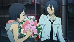 The huge amount of exposition in the episode was to be expected; were only partway into the story after all, and its obvious this finale was more a pit stop for the story than a fitting climax. I think Ive made it plenty clear before that Im not particular fond of these story goes on conclusions, but in this case, Im more inclined to forgive it given that there is going to be more story- the Tsuki no Naku ONAs that pick up almost immediately after the conclusion of Hana no Uta. Im eager to see the continuation narrative, especially if there’s going to be more development of Akinas experiences following the glimpse of the alternate dimension forced onto him by Enjin; Akinas world has been shaken-up quite thoroughly by the end of Hana no Uta, and theres bound to be interesting results in his adamant perspective on the Hiizumi powers.