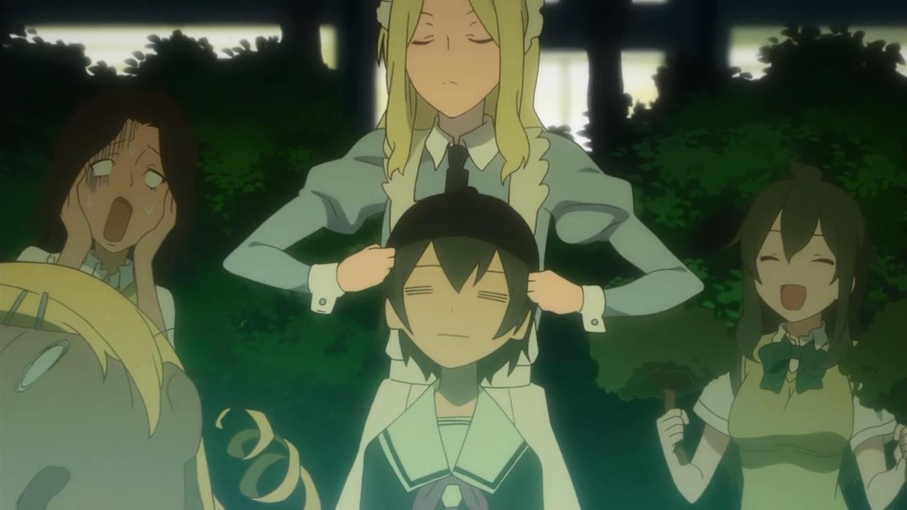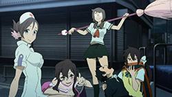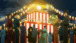 The rest of the episode is pretty much your standard midpoint closing fare. The sisters relationship has be salvaged with Lila now helping out as Juris assistant, and Hime ever the attention seeker- gets the last bits of spotlight with a sweet reciprocal moment of Akina holding her hand; yea, I agree weve been around this Hime-shtick way too many times this season already, but its also the utter expressiveness of these moments that Im reminded why this series have been so charming to watch. And it sort of comes full circle with the start of the series, even though theres nothing particularly resolute about the ending: it closed off with the characters going out to partake in another one of Sakura Towns festivities, But there is that single funny shot of Enjin indulging in festival goodies on his lonesome. Still, I cant say I didnt expect for Yozakura Quartet to go out in any other way; not with a bang or a whimper, but with the book still wide open.