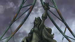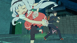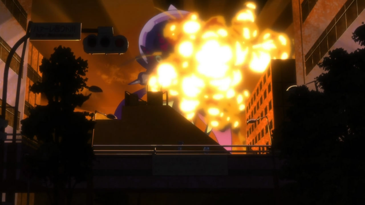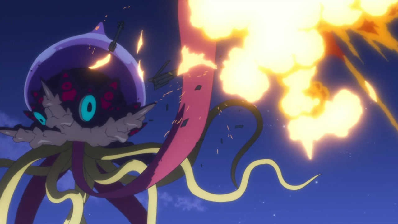 My point is that often storytellers tease us with information to get us interested, and they did that here. It started with Asuta’s meeting with Hoshimiya Kate (Kuno Misaki), also known as the leader of Zvezda, Venera-sama. No, let’s go further back–it was when it was so casually mentioned that martial law was in effect that they really started to reel me in, something which was furthered when alien-like squid monsters started blowing up in the background.
