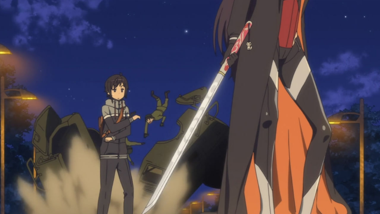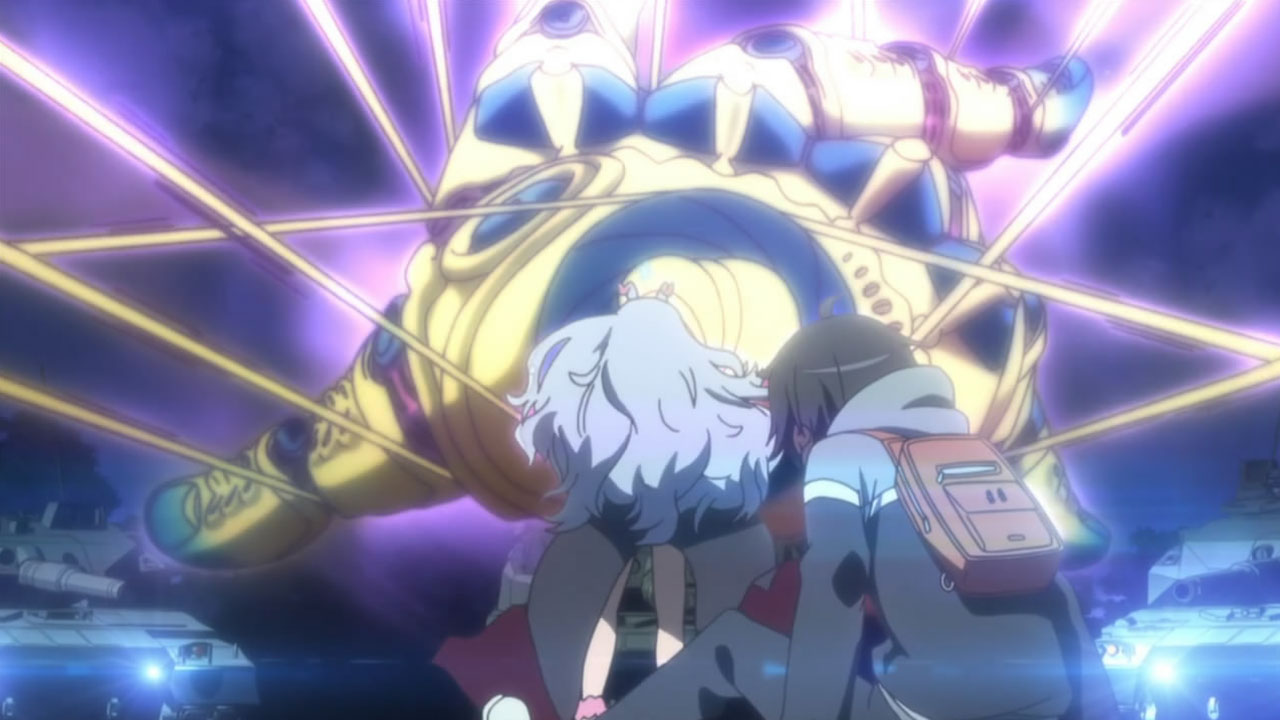 The military defeated the giant monster by themselves. Well that’s new. Even if they did get pummeled by the loli shortly afterwards.Regarding your comments about “holding back information to doll it out later on”, I think that requires the protagonist to have some familiarity with circumstances, and the world setting only needs to be explained if it significantly differs from what we’re familiar with. Additionally, the beginning of two of the series you mentioned follow the beginnings of the shounen manga they are adaptions of fairly closely. In general, shounen manga can’t afford to hold back in the beginning when they need to attract as many fans as they can.That might explain why those series and this series start out differently, but why this series starts out this particular way is probably because of the reasons the above commenter mentions. Though I’m not too familiar with Meteor, if what Reader says is true, then that would certainly explain things seeing that Hoshizora’s the one doing the series composition.