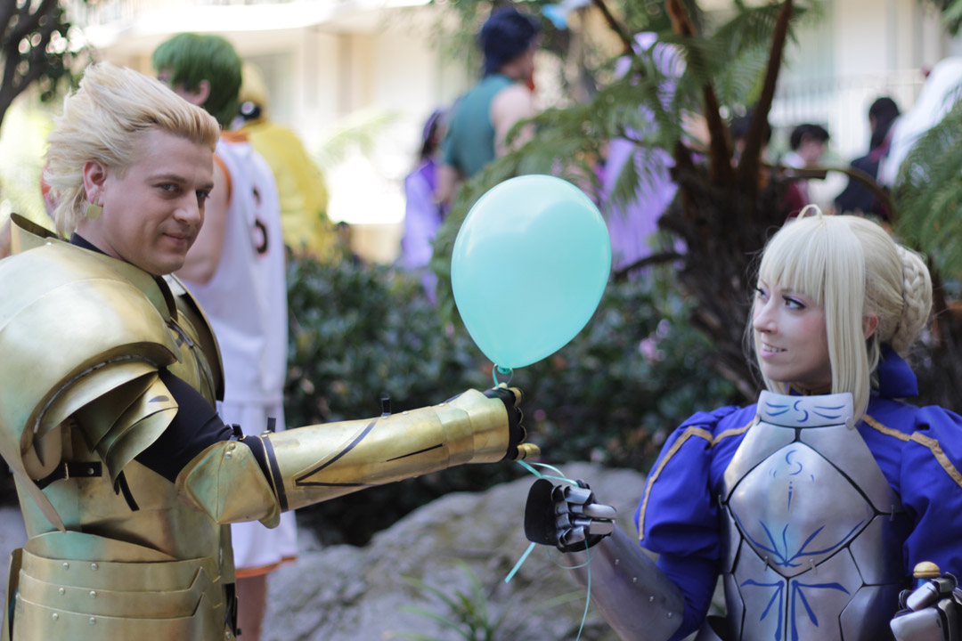 Funny story about that picture actually — there was some random photographer guy taking a ton of shots of them and literally eating up all their time. He also untied a balloon that the convention used to mark something and made whoever he wasn’t shooting hold it. So after about 3 minutes, I got fed up (because it wasn’t a shoot, just a random guy asking to take a photo) and asked the Gilgamesh and Saber to take their photo. The Gilgamesh was kind of awkwardly holding the balloon and I was like, this is a perfect opportunity to take a cute photo.And there you have it!