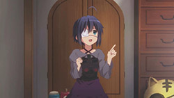 Seriously, what the hell is this? Just when my favorite couple of the season finally take a step forward, a new random girl (Is this Yuuta’s old “soul-mate” from way back when? I don’t remember…) who just happens to have chunibyou and lives above Yuuta appears? Even though I could look at this as another stepping stone for Rikka to pass on her way to achieving full-couple status, I just can’t. I can already see it — jealously battles, Rikka’s bubble getting invaded, and at the worst Yuuta doing something stupid that will only take his relationship three steps backward. I guess though, until she’s properly introduced (Or is re-introduced?) we’ll have to wait and see just how dangerous she’ll be…