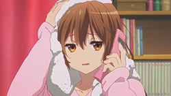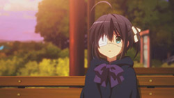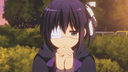 Daaaaaaaaaaw. At this rate this show will put me in a fluff coma by the end of the season.The show’s really touching on some relevant issues though, hooking up can be hard, but the ‘happily ever after’ is just as difficult if not more so to work through. As Takaii said we’ve all got the image of an “ideal” relationship in our heads, and reality never fits (been there, done that). Watching them work through it is bloody adorable.We’ll see how the love rival works out, it could be annoying or serve to push them along. It was hilarious how the balcony scene was with Rikka instead of Yuuta. I guess they never did say she’d be gunning for Yuuta…
