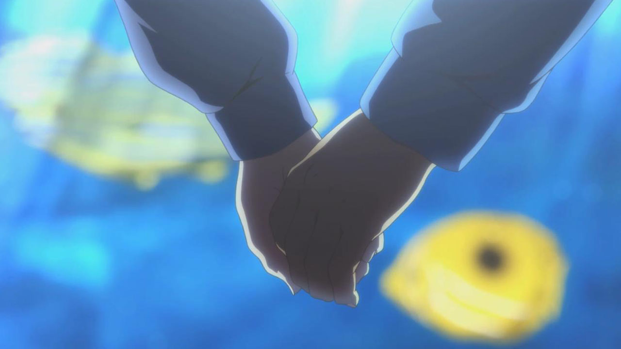 The scene leading to this would make a nice gif too. Rikka shuffling sideways and tapping Yuta twice to hold hands was just too cute. http://images.randomc.net/Chuunibyou%20Demo%20Koi%20ga%20Shitai/Chuunibyou%20Demo%20Koi%20ga%20Shitai%20Ren%20-%2002%20-%20Large%2029.jpg