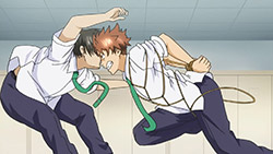 This premiere mainly served as a reintroduction to the cast and the setting, and it did that job well. After a quick intro sequence reminding us of the setting, they took us through familiar scenes and gave us a first adventure fitting of Maken-ki’s action-ecchi roots. Once again, if you like that sort of thing then you probably enjoyed the episode, so here were my two favorite things: the entire idea that the culprit was targeting girls based on their increasing bust sizes (and the reactions to this), and the fact that even though protagonist Ooyama Takeru (Maeno Tomoaki) and his best pal Usui Kengo (Tsuruoka Satoshi) are perverts to the core, even perverts have honor! As you can tell, it wasn’t exactly a meaty affair, but I like the characters and it got some laughs, so it worked for me.