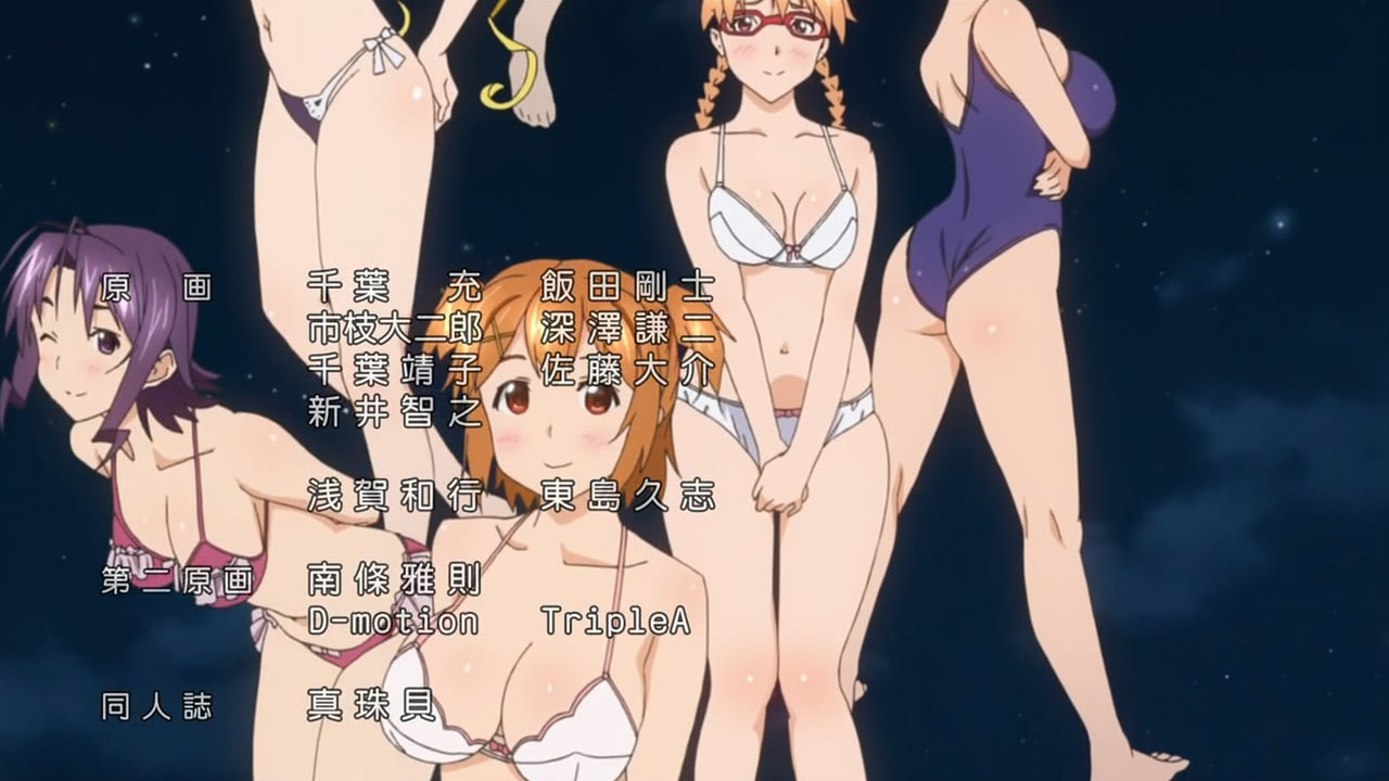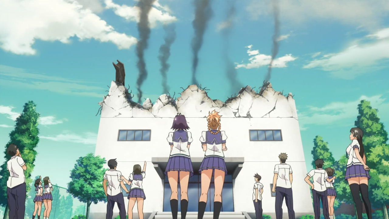 To those who are saying stuff like “I should start watching S1 now.” or “Like hell I’d watch this shitty show!” I just wanted to say that this and the next episode are NON-CANON. Although yes, S1 was based somewhat from the manga, I personally just hated it purely because it wasn’t being faithful towards the material. So instead of watching a shitty season before watching the second one, it’s best preferred to go read the manga to see what actually happens during AND after season 1 because… they shouldn’t be at school at this time, since the majority of what happens after the first arc (S1), takes place at the training island from the OVAs, starting from chapter 26-59. Plus, besides the huge ecchi fanservice it serves, there is a developing plot behind those H,I and J cups. So why not try to ignore the fanservice and give it a read?