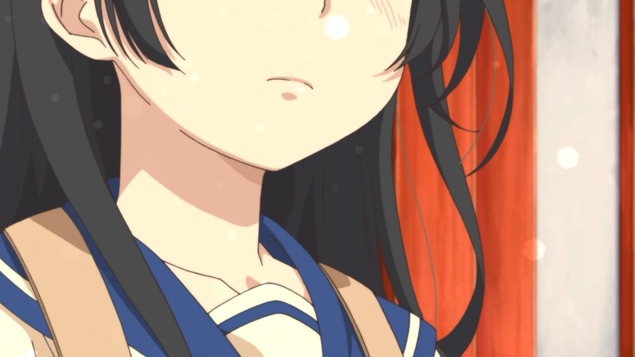 Well first, she’s in middle-school. By most of our definitions she IS a child. So she’s at an emotionally volatile age. Second, it’s not like she’s crying for no reason. The things that upset her are things that were fairly justifiably upsetting. Third, she’s kind of sensitive, so yes, she cries. It happens. Fourth, you’ll note how she doesn’t like the fact that she just ends up there at the shrine, crying about what’s gone wrong, unable to do anything herself. Her desire to change herself into a stronger person is kind of what kickstarted this whole chain of events. So could you A: try to understand her a bit more, and B: give her some time to have some character growth before coming down on her like that?
