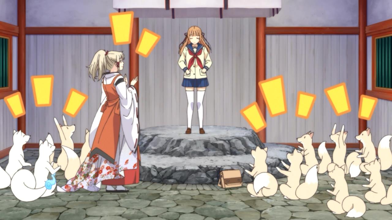 That being said, don’t go into Inari expecting this much-spoken-of “saviour of anime”, or something gripping and high-brow. This is a good little show so far, that’s true, but it isn’t unique or particularly different from other offerings in its family. Chances are you’ve seen every trope in the book by the halfway point, and you can probably name a few siblings it reminds you of in seconds. But that isn’t really the point when it comes to shows like Inari, Konkon; it’s not about how new or interesting the premise is, but how much entertainment you get out of the tried-and-true ideas, and how invested you become in the world and characters. Everyone is attracted to certain general premises depending on individual taste, and Inari is definitely in the “mystical fantasy” and “shrine anime” categories, with a little comedy here and there. Think series like last season’s Gingitsune, though not quite as profound, and you’re definitely in the right area.