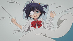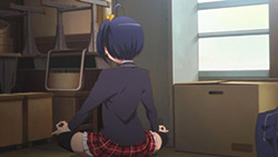 In a show that has “chuunibyou” in its title, being the normal person usually doesn’t work in your favor. With everyone vanishing reality with awesome CG filled fight scenes and couples like Rikka and Yuuta or Dekomori and Nibutani stealing any of the spotlight that’s left, there’s been very little room for Kumin to do much besides nap.