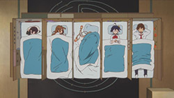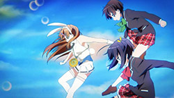 Not as good as last week, but the scene of all of them practicing napping in the club room was hilarious, especially Dekomori (again) getting caught by Morisummer worrying Rikka might be doing the naughty. That and Rikka getting nailed with the elastic and pulling out Yuuta’s speech as though she found the Holy Grail.Also calling it now, Rikka and Shichimiya are going to be sharing more girl-girl moments in the future. Eskimo kissing? Pft, that’s just foreplay. They have Yuuta’s Black Dragon yet to tame.