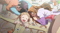 I thought it was brilliant how Kumin and the others used the one thing they had going for them to beat an expertly trained team of nappers — their chuunibyou skills. Not only is the idea of shared dreams theoretically possible but what better place is there for someone to unleash their chuunibyou then in a dream? As clich as it may have been, I just loved how what happened in the battle affected everyone in real life. I’m not sure what it was, but watching the effects of the dream world materialize in the real one just felt so right.