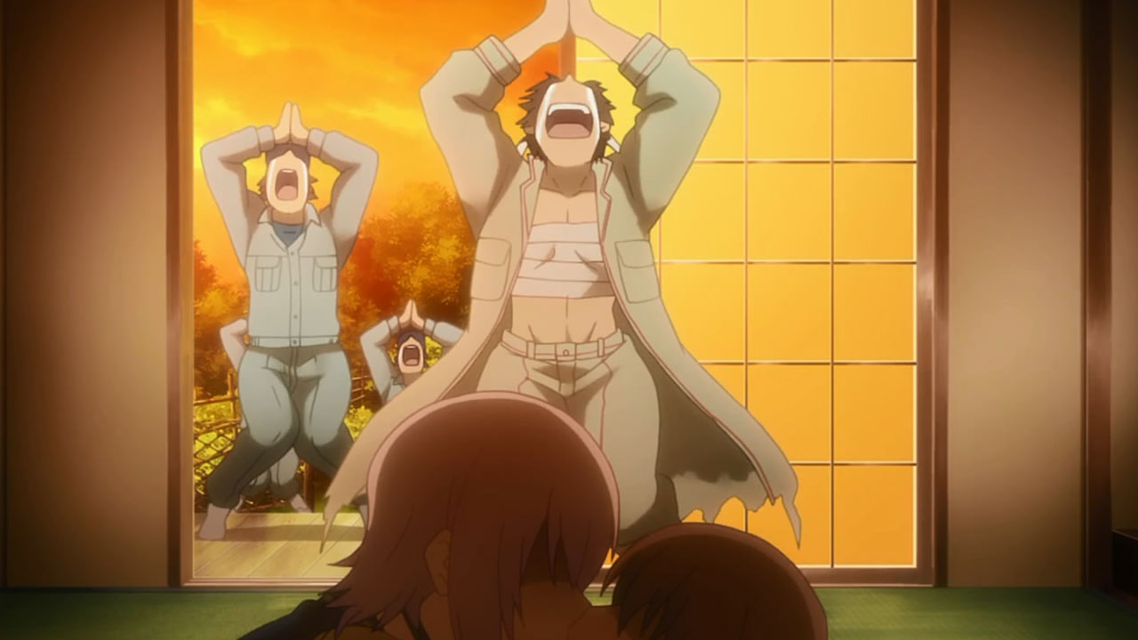 Comedy is back in town for Nourin, but along with the laughs comes a plot that’ll be longer than one episode! It’s basically Baka to Test all over again, with different classes collaborating and plotting against one another each for their own personal gain. The difference here is that each class isn’t organized in a hierarchy of winners and losers, but rather themed classes that each have their specialities. So far, the divisions that have been revealed are A(griculture), B(iology), F(orestry), and E(cology?), each equally as full of talented and crazy individuals. Mixing those classes together spells out hilarious situations, most of which happen to be borderline yaoi and NTR. Though mainly a vehicle that serves as an excuse to have guys shooting yoghurt at each other, today’s episode laid down the foundation for a possible multi-episode arc that should provide some suspense while looking forward to the next episode. How will this tie with developing Ringo and the main cast? Who knows, but at least something is happening