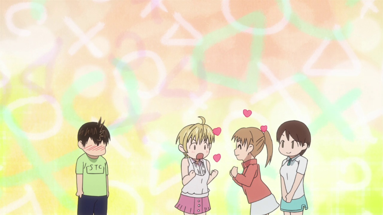 Ei-chan is a great lead. He’s a lot of fun to watch, mainly because he never whines, he just analyzes and comes up with a new plan. Every time. You see it in this ep: “I’m too weak to complete the warm up. Guess I’ll start running every day.” He’s not a robot, he’s just brutally honest with himeself. (Robots don’t blush or hide from girls looking their way.)