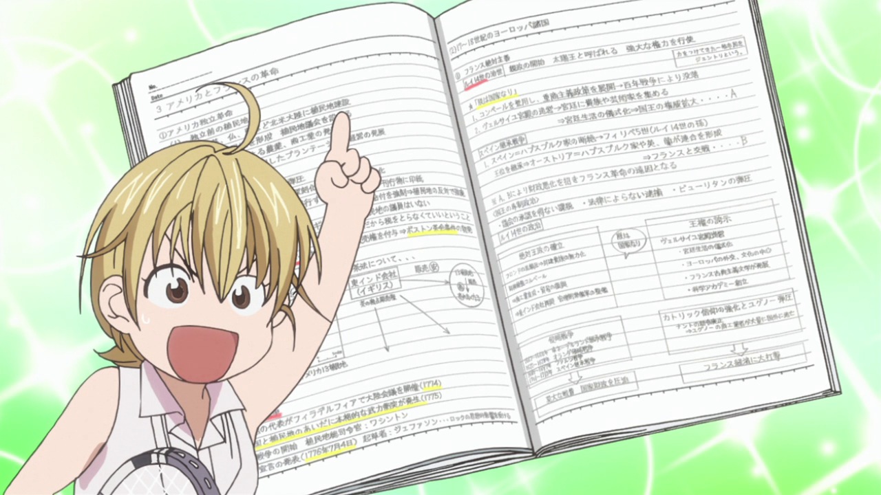 what sports anime does well is hyping the audience up and introducing (and exaggerating) aspects of the featured sport. however, i’m actually more interested in picking up some study skills from eiichiro, as silly as that sounds.