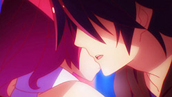 I also like their completely asexual, yet intimate realtionship. Especially the moment where in face of danger Sora moves instinctively to protect Shiro. They might be broken, yet still they have human feelings, and in the right direction!