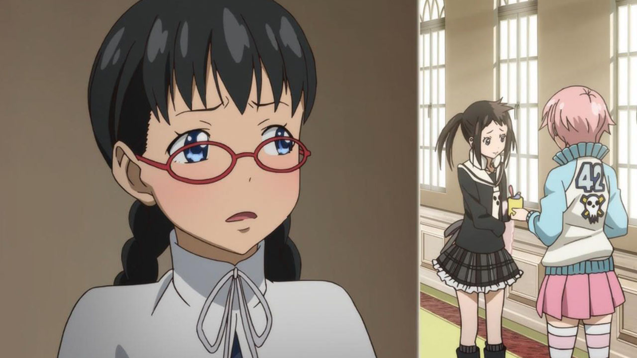 I’m more surprised the dorm supervisor wasn’t the witch. I guess people who’ve lived there are okay with a psycho managing their dorms, provided they don’t look like any characters from Miss Misery’s favorite book. And I loved Kana’s tarot style insults on Anya. Also anyone else noticed the Maka+Soul cameo? they we’re walking by in the Shibusen cafeteria.