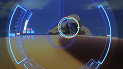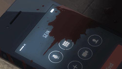 I was thinking that a HUD (Head-Up Display) would have worked nicely here. That way he could have kept his hands free while fighting. I would have laughed if Miori had called him in the middle of his finishing combo.