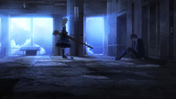 While I can’t seem to find the right words to describe it, the entire fight between the two felt a little strange. Maybe it’s because common sense says you shouldn’t run straight toward a sniper or maybe it’s because it was more like a battle between Rentaro vs remote controlled assault rifles up until the very end but the whole thing had this awkward feel surrounding it.