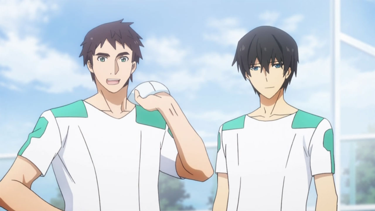 I’ve seen some of the promo material, so I knew we were still missing at least one main member of Tatsuya’s nakama, and now he’s here. Yoshida Mikihiko (Tamaru Atsushi) has arrived! I honestly liked him from the get-go, and not just because he and Tatsuya started throwing out shounen-ai, causing Leo to feel left out, and is the next season of Free! here already? No, the reason was…
