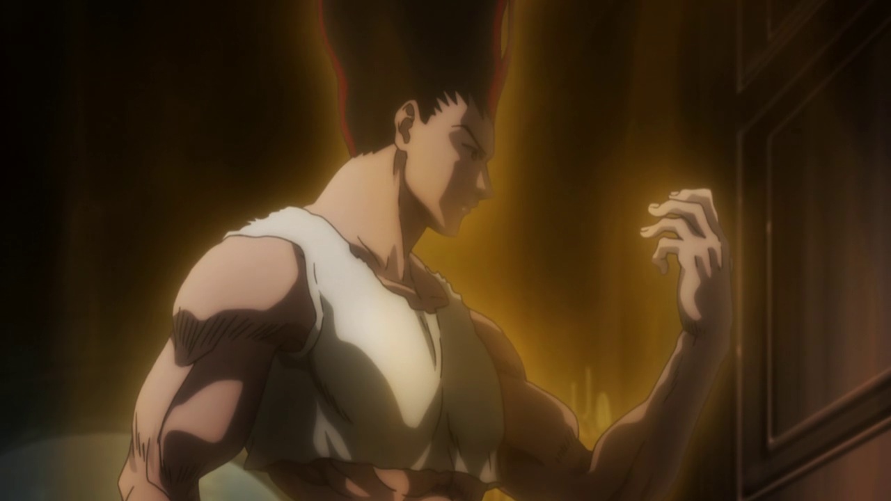 Okay, now with that out of the way, let’s get to the episode. a simplistic way of looking at it is Gon (Gon Banner?) literally hulked out (he sort of looked like a buffed up version of the dude with the flat top from Kid N’ Play!). If we look at it deeper, we see Gon sacrificed something (besides his arm) to obtain this power (possibly his own nen or life force). How this will affect him after, we’ll have to wait and see.