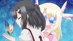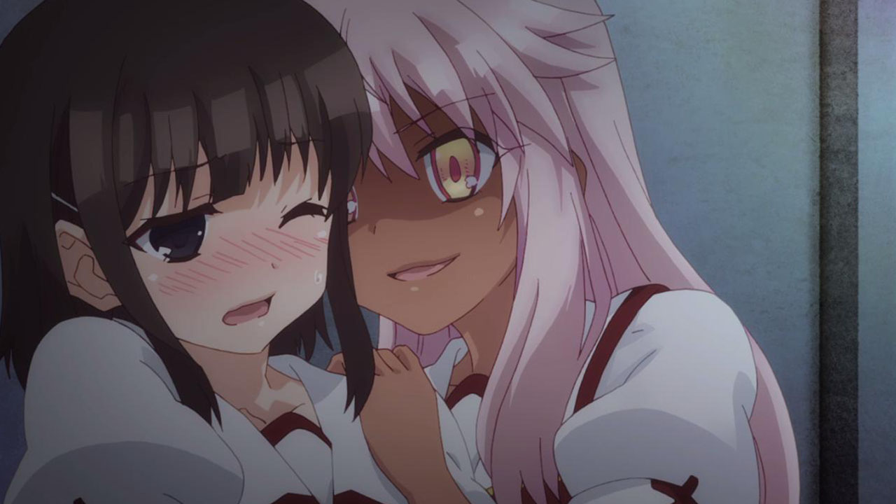 Sakura Trick was a bit more open about showing the lesbian kissing. Prisma Illya always pans slightly away. More funny than for titillation…except for that Kuro x Miyu kiss, oh my!